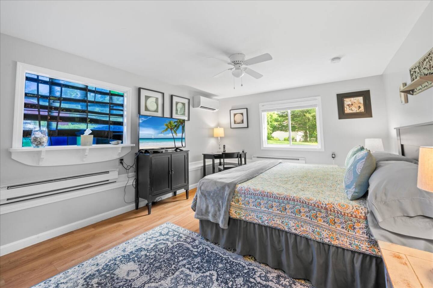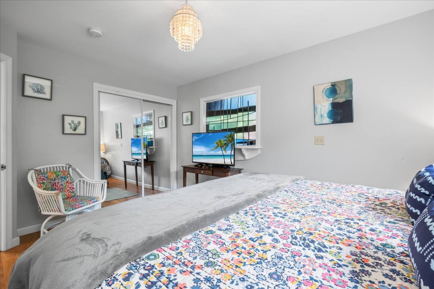 Step inside your next gorgeous retreat, and you'll find a stylish and spacious interior. High ceilings grace the upstairs living room, where a cozy fireplace and comfortable sofas create a warm and welcoming atmosphere for you and your loved ones to embrace. The unique stained glass windows add a touch of character and charm, casting colorful patterns across the room. Your culinary adventures await in the well-equipped kitchen with dark cabinets and modern appliances, while the dining areas offer both an intimate kitchen table and a more formal space with natural light pouring in from all directions - for your comfort the central air conditioning provides the perfect temperature throughout your whole stay. When it's time to rest, the cozy bedrooms beckon with king-sized beds, promising a peaceful night's sleep with air conditioning throughout. Outside, the private patio deck and patio await, offering outdoor seating, a BBQ grill for delectable meals, and sun loungers where you can bask in the sun's warm embrace. It's the perfect setting to create lasting memories with family and friends. As for the location, this charming getaway is nestled in a prime spot in Groton, CT. You'll be just minutes away from the beauty of Bluff Point National State Park and Esker Point Beach, and the Avery Point Campus is a short drive. With Mystic's renowned attractions, restaurants, and entertainment such as the casinos just a stone's throw away, you're poised to explore the best of the area. Whether you're looking for a relaxing escape or an adventure-filled vacation, this haven offers the best of both worlds. ✔ Private Patio ✔ BBQ ✔ Private Decking ✔ Outdoor Furniture ✔ King Beds ✔ Sun Loungers ✔ Views ✔ Central Air Conditioning ❖ LIVING ROOMS ❖ Let's begin with the upstairs living room, a truly breathtaking space that welcomes you after a day of local exploration. Its high ceilings create an open and airy atmosphere, and the room exudes spaciousness. A fireplace graces the room, casting a warm and inviting glow. Sink into the comfortable sofas and engage in heartfelt conversations with your nearest and dearest. Through the double doors, you'll find access to the private patio decking, connecting you with the outdoors. This snug room, complete with a fireplace, transforms into the ultimate board game battleground, offering ample space for your family's favorite games, where laughter and friendly competition reign. Stepping into the next living room and dining room area, you'll discover an open-concept layout that harmoniously blends the two spaces. Unwind on the pull-out sofa bed and immerse yourself in your favorite shows on the large HDTV. Here, you can savor your evening moments with your loved ones, creating cherished memories in a cozy and welcoming environment. ✔ Comfortable Sofas ✔ Large HDTV ✔ Spacious ✔ Open Concept ✔ Board Games ❖️ KITCHEN & DINING ❖ Feeling hungry? It's time to venture into the chic kitchen, where dark cabinets contrast beautifully with the countertop. Whether you're in the mood for whipping up a three-course gourmet feast or simply a quick snack, this kitchen is your canvas. It's equipped with an array of appliances, from the oven and cooker to the refrigerator, freezer, kettle, toaster, blender, rice cooker, and, for the coffee aficionados, a coffee maker. Once your culinary masterpiece is ready, gather around the kitchen dining table, offering seating for 6. Positioned in front of a vast window that overlooks the private patio decking, you're destined to craft enduring memories over delicious food. For a more formal dining experience, step into the bright and airy dining room, where natural light floods in from all angles, creating a stylish and relaxing atmosphere. Take a seat at the dining table with room for 4, and savor your favorite drinks and a scrumptious meal in this inviting space. ✔ Microwave ✔ Oven ✔ Cooker ✔ Wine Glasses ✔ Coffee Maker ✔ Rice Cooker ✔ Refrigerator ✔ Dishwasher ✔ Freezer ✔ Sink - Hot & Cold Water ✔ Silverware ✔ Pots & Pans ✔ Indoor Dining Table With Seating for 6 ✔ Formal Dining Table With Seating for 4 ❖️ BEDROOMS ❖ When it's time to rest, make your way to the ground floor bedroom, where a luxurious king-sized bed beckons you into a night of pure serenity. Its glass doors open to the private patio, granting you a seamless connection with the outdoors. An HDTV awaits, ensuring your evening entertainment right from the comfort of your cozy haven. Step into bedroom number 2, graced by yet another elegant king-sized bed and soft, inviting linens, promising a tranquil night's sleep. Here, a dedicated workspace awaits, ideal for those moments when work or calls can't wait. Once work is done, sink into your inviting bed and indulge in the evening's entertainment on the large HDTV. The highlight of this room? A stained glass window, casting a unique glow. Bedroom number 3 is your next sanctuary, featuring, you guessed it, another spacious king-sized bed and an HDTV. Each room offers the same level of comfort, ensuring everyone enjoys their well-deserved rest. Bedside lamps create a cozy ambiance for quiet evenings, perhaps reading your favorite book before drifting into a deep slumber. Plus, the sliding mirror closet provides ample space to keep your clothes neatly organized. Lastly, bedroom number 4, where once again, a king-sized bed awaits, bathed in natural light and accompanied by an HDTV. Each bedroom is a masterful retreat in its own right. A stained glass window adds a touch of character and charm to this room, enhancing its unique atmosphere. ♛ Bedroom 1: King Sized Bed, HDTV, Private Patio Access ♛ Bedroom 2: King Sized Bed, HDTV, Dedicated Workspace ♛ Bedroom 3: King Sized Bed, HDTV ♛ Bedroom 4: King Sized Bed, HDTV ♛ Additional Sleeping: Sofa Bed The bedrooms are equipped with the following amenities ✔ Premium Pillows, Linens, and Sheets ✔ Decoration and Comfo
